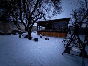După un an în care lucrările sunt deja aproape încheiate (mai avem de finalizat aspecte de finețuri precum mobilier, ornamente, lustre), foișorul a căpătat viață în diverse forme: mi-a fost refugiu dimineața la cafea în timp ce degetele-mi dansează pe tastatura silențioasă. Am sărbătorit deja zile de naștere acolo și ne-am bucurat în veselie. Prin transparența rulourilor din plastic, admir natura curții dimineața în timp ce beau cafeaua și, când plouă, ascult melodia picăturilor care spală frunzele. Și mi-am văzut visul cum a căpătat contur și să țin atelierul de creație acolo. Este ambientul perfect, într-un colț liniștit la țară, cu miros de lemn și culoare de stejar rustic, ne-am strâns la Șezători în culori.
